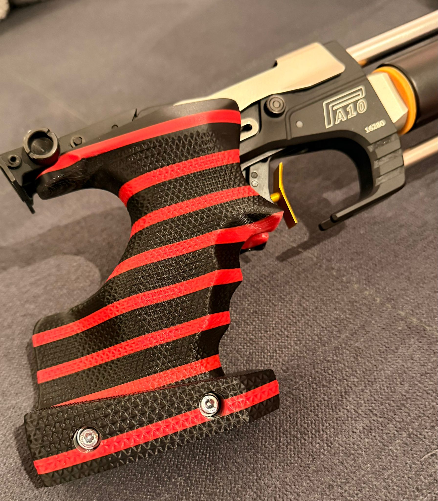 Zum Verkauf steht ein hochwertiger, individuell gefertigter Pistolengriff für die Tesro PA10 / PA10-2 Luftpistole, passend für Rechtshänder in Größe M.