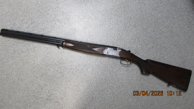 Das meistgebaute Beretta Flintenmodell; universell einsetzbare und qualitativ hochwertige Flinte mit Flankenverschluss, Einabzug, Ejektoren, Umschalt-Schiebesicherung auf dem Kolbenhals, leicht rechts geschränkt, der Oberhebel steht noch rechts, demzufolge ist der Verschluss auch noch sehr stramm und dicht, Chokebohrungen M und F, ventilierte 6mm breite Laufschiene mit weißem Perlkorn, gültiger Beschuss ist vorhanden (kein Stahlschrotbeschuss)