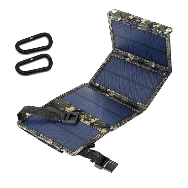 1 Solarpanel mit faltbarer Tasche und integriertem Standart-USB-Anschluss, Außentasche und Klickverschluss