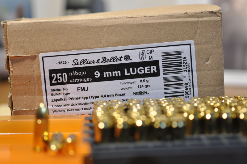 270 Patronen 9 x19 mm oder Luger oder Parabellum von Sellier & Bellot, mit 8,0 g Vollmantelgeschossen und Messinghülse mit Boxerzündung. Eine Patronenbox für 100 Patronen und ein Magazinlader Maglula Uplula für doppelreihige Magazine 9mm bis .45ACP sind inclusive. Der Magazinlader funktioniert hervorragend, damit gehören dicke Daumen der Vergangenheit an. Wegen Aufgabe des Schiesssportes abzugeben.