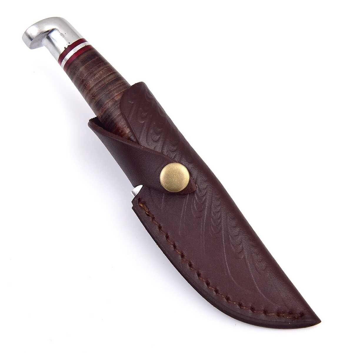 Die ebenfalls handgefertigte Lederscheide besteht aus hochwertigem Rindleder.