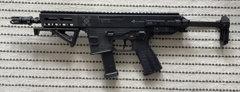 Ich verkaufe aus meiner Sammlung die GBB-Airsoft der Marke Lambda Defence mit der Brügger & Thomet GHM-G 9, Original Markings von B&T. Hier in der Upgrade Version, d.h. Alu-Receiver und Alu-Handguard, Alu-Aussenlauf, Stahl-Schubschaft, dazu kommt ein Stahl-Flash-Hider und der Frontgriff. Enthalten ist das Original 20 Schuss Magazin. Es passen auch hervorragend die VFC G18 Extension Magazine wie auf dem Foto. Hier nur als Beispiel. Das lange 50 Schuss Magazin von VFC ist NICHT BESTANDTEIL dieser Auktion.
