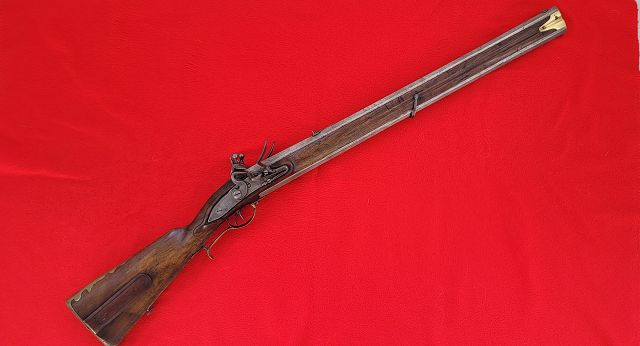 Das Gewehr befindet in gutem bis sehr gutem, etwas verschmutzem Zustand und ist in allen Teilen original. Die Mechanik mit den beiden Steinschlössern arbeitet einwandfrei. Die Lauf- bohrungen sind gut mit alters- und gebrauchsbedingten Spuren.