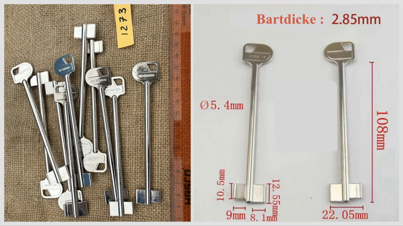Sie bieten hier auf 10 Stück neuwertige Tresorschlüssel Rohlinge. Die Maße der Rohlinge sind auf der Skizze angegeben.