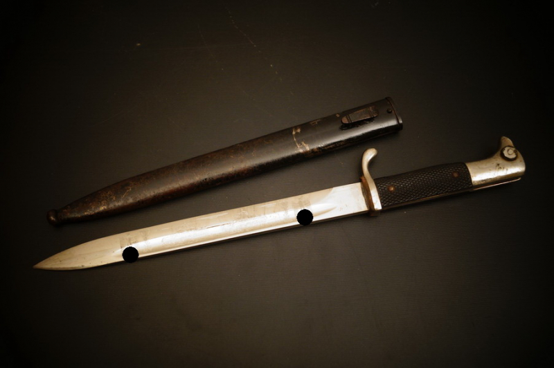 Fundzustand. Lange Ausführung mit Stahlscheide und vernickelter Stahlklinge. Schöne Schmuckätzung der Panzertruppe.