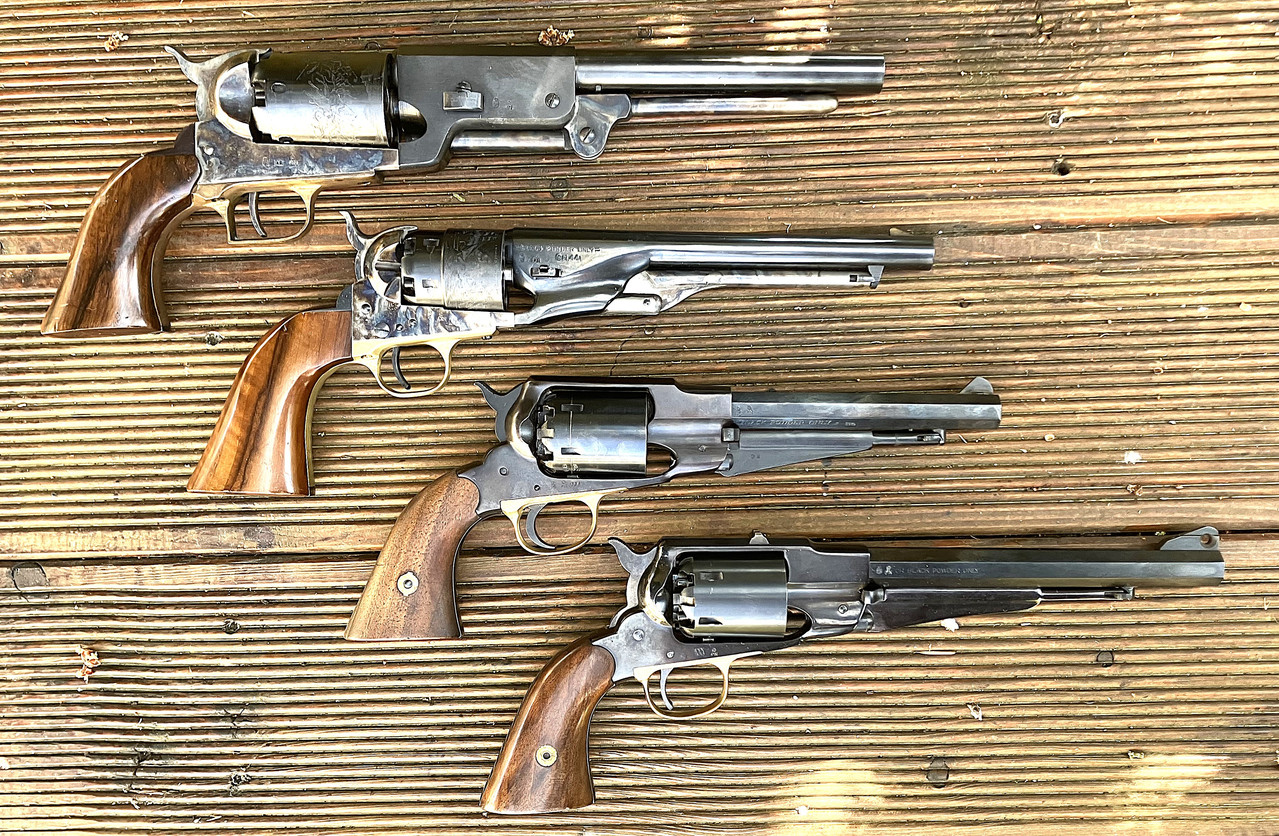 4xRevolver; Typen Colt Navy, Colt Dragoon, Remington (Hersteller Uberti, Euroarms ect.)