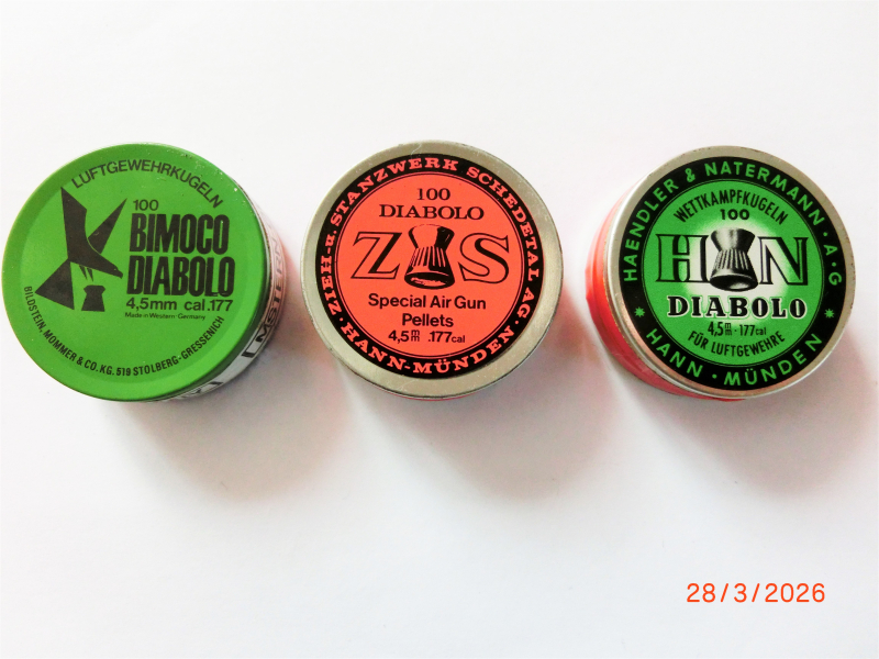 Biete hier 3 kleine Döschen je 100Stück Diabolo 4,5mm Bimoco- ZOS- H+N in super Zustand original verschossen für Sammler oder Schützen zum Kauf an