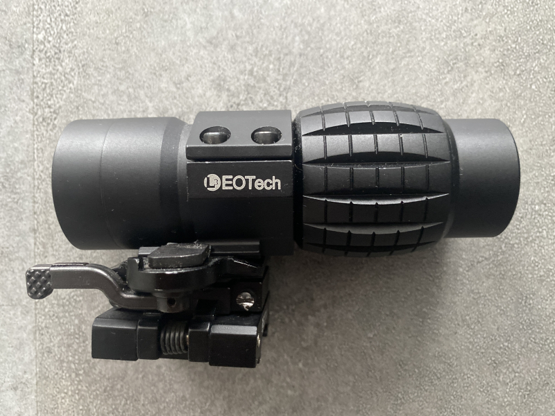 Sie bieten hier auf ein kaum gebrauchtes Magnifier incl Klappmechanismus. Die Vergrösserung ist mind 3 fach, durch den Daumendruck lässt es sich wegklappen. Es ist kein Original Eotech!! Durchmesser ca 30mm am Glas, Länge ca 12cm, Höhe Montage bis zum Magnifier ca 22mm. Hatte es ein paar mal auf einer KK und 9mm Büchse drauf, komme jedoch mit einem einfachen Reddot besser zurecht. Da es sich hier um eine Privatauktion handelt muss ich eine Garantie, Gewährleistung oder Rücknahme ausschließen.