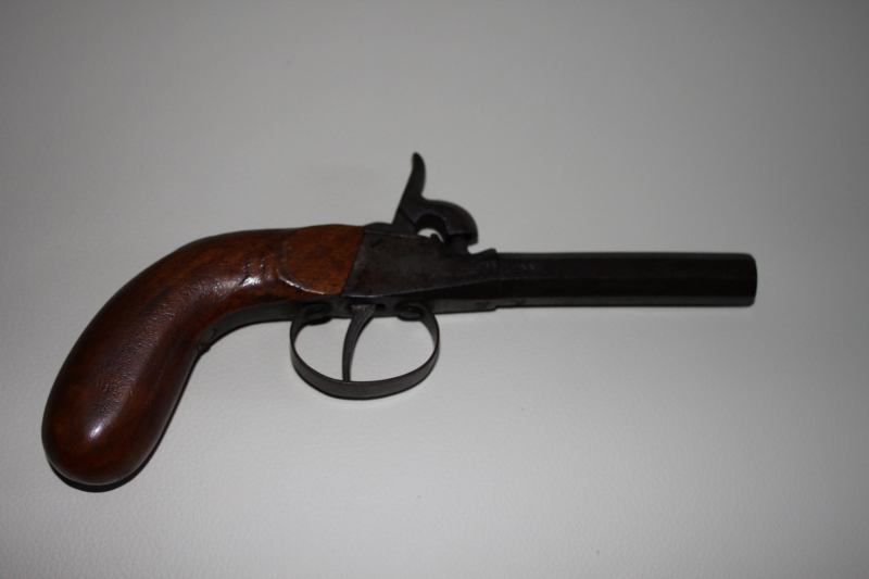 Verkauft wird ein deutsches Terzerol Kal. 10mm mit Beschusszeichen. Punziert mit August Stukenbrok Einbeck, ein bekanntes Einzelhandels-Versand-Unternehmen, als zweitältester in Deutschland 1888 gegründeter Versandhandel, der durch durch den Vertrieb von Fahrrädern, Waffen, Nähmaschinen und vielem mehr berühmt wurde. Das Terzerol ist ein echtes Stück Zeitgeschichte. Die Waffe schlägt straff ab, wurde aber von mir nie mit Pulverladung gezündet. Sie hat Alterspatina aber keine gravierenden Rostschäden. Ich habe nicht daran herumgeputzt oder geschliffen. Das Griffstück kann vor längerer Zeit mal gewechselt worden sein, kann aber auch original und nur lackiert worden sein. Eigentlich sollte das Teil in Einbeck im Stukenbrok Museum liegen aber bei einem Sammler ist es auch gut aufgehoben.