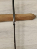 Antiker japanischer Speer (Sankaku Yari 三角槍 dreieckiger Speer) in Shirasaya. Der Nakago ist mit „Yamashiro …kuni …“ signiert, jedoch nicht vollständig lesbar. Ein Sankaku Yari hatte eine Spitze, die einem schmalen Stachel mit dreieckigem Querschnitt ähnelte. Der Sankaku Yari eignete sich am besten zum Durchbohren von Rüstungen, sogar von Metallrüstungen, wofür ein Standard-Yari weniger geeignet war. Sehr guter Sammlerzustand, Klingenlänge 26,5 cm, Klingenbreite 2,7 cm, Gesamtlänge in Shirasaya 84,5 cm. Kopie des Torokuscho inklusive.
