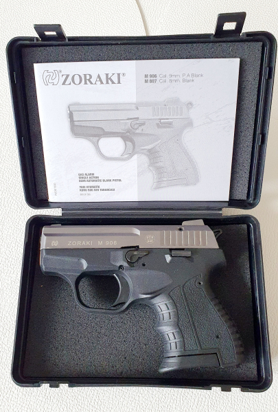 Zur Auktion kommt hier eine Zoraki M906 Pistole, die ich vor einigen Jahren neu beim Händler gekauft habe. Die Waffe wurde von mir weder geschossen noch geführt. Die Farbe des Schlittens nennt sich Pladet Titan und weist an einigen Stellen leichte Verfärbungen auf. Dies ist offensichtlich auf einen Fehler bei der damaligen Herstellung zurückzuführen.