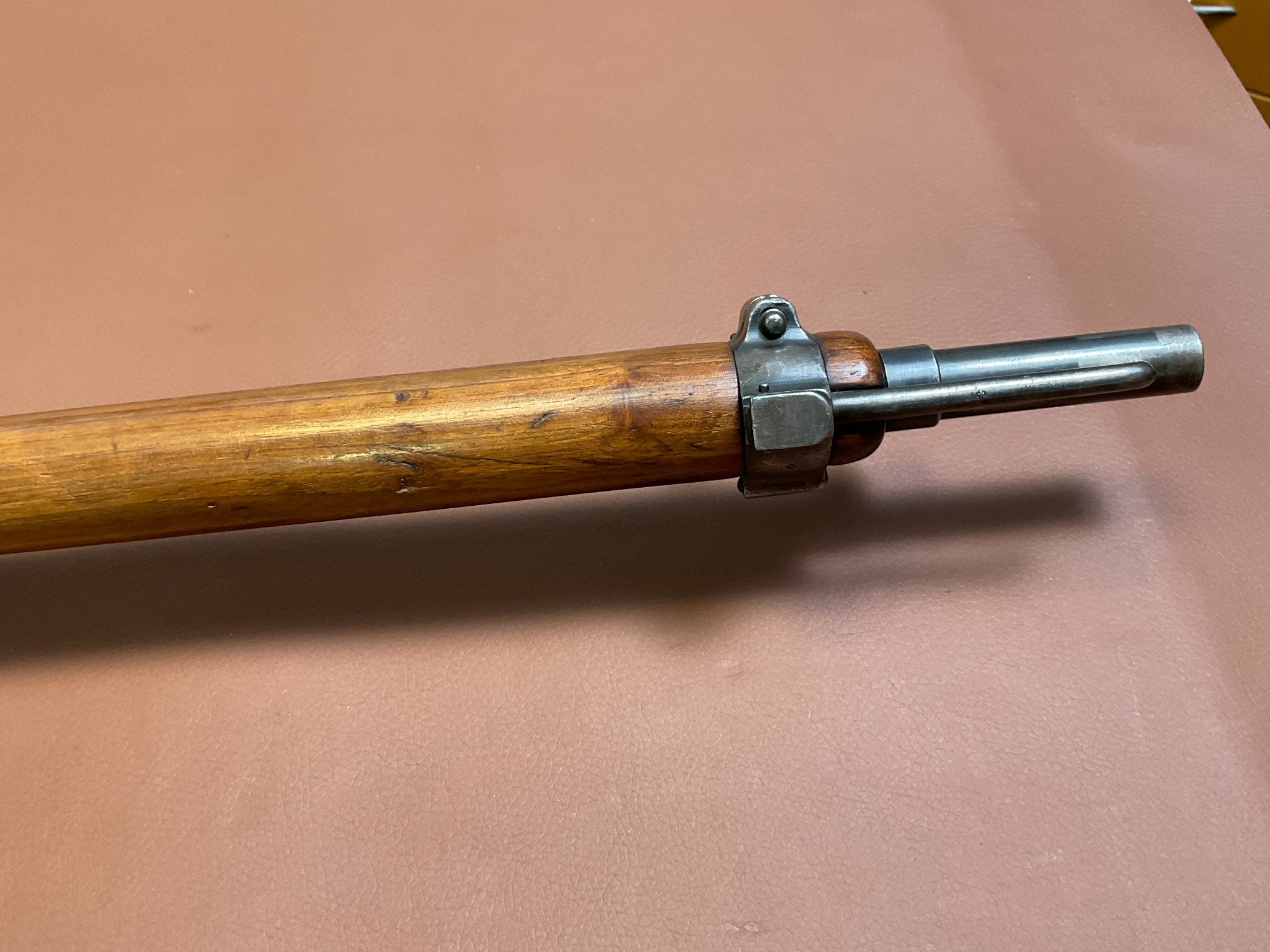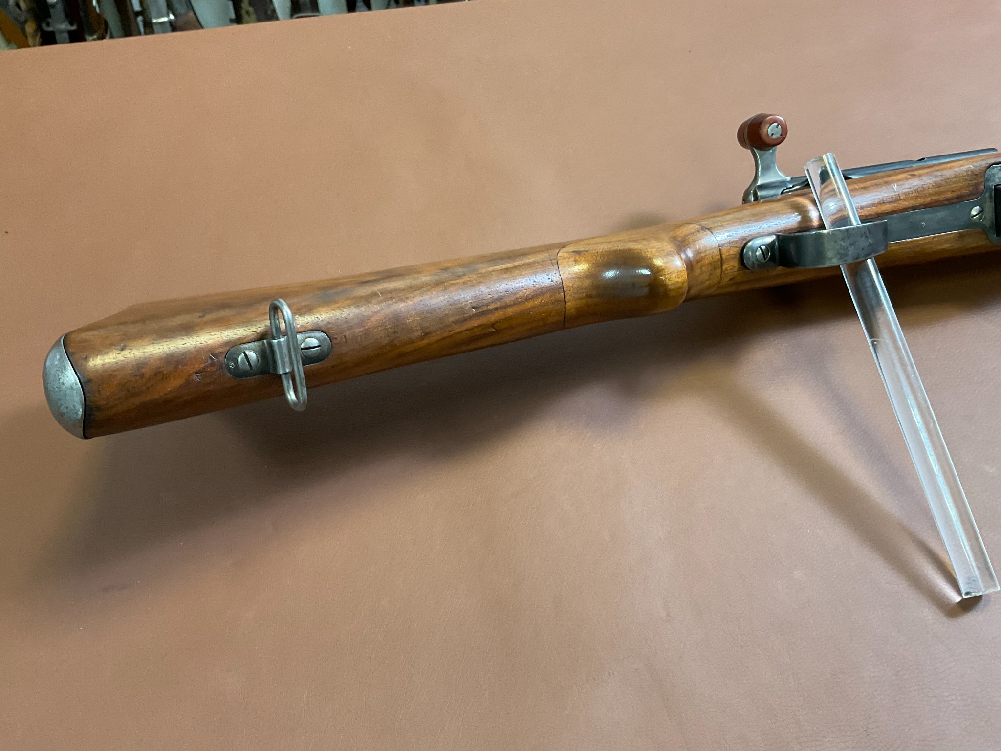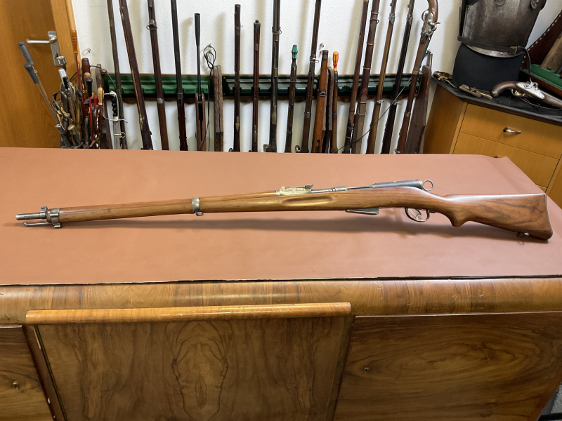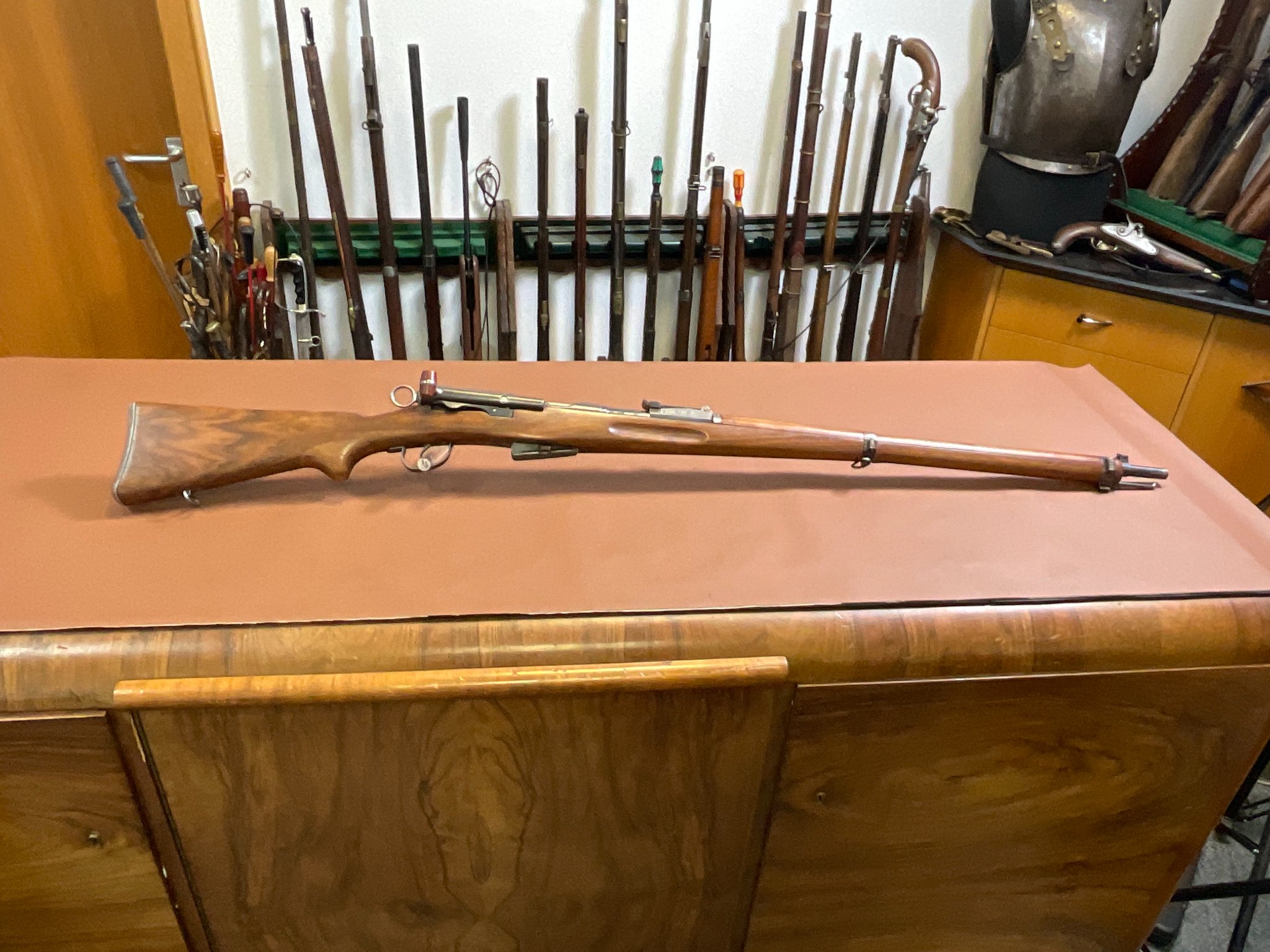 Zum Verkauf steht ein Schmidt-Rubin-Gewehrsystem (Geradezugrepetierer), gefertigt von der eidgenössischen Waffenfabrik in Bern (Schweiz). Es handelt sich um das Modell 96/11 im Kaliber 7,5 × 55 Swiss.