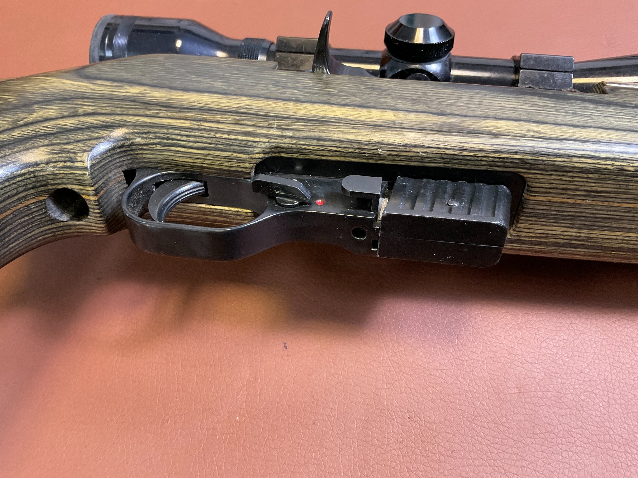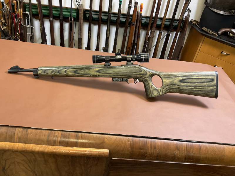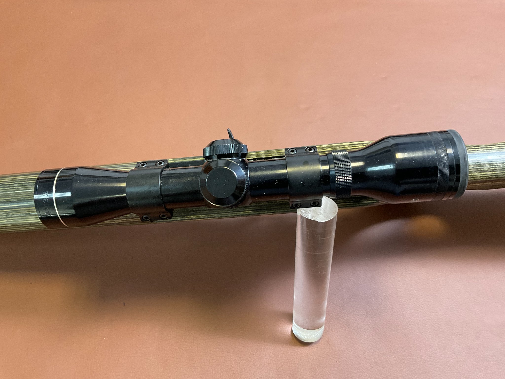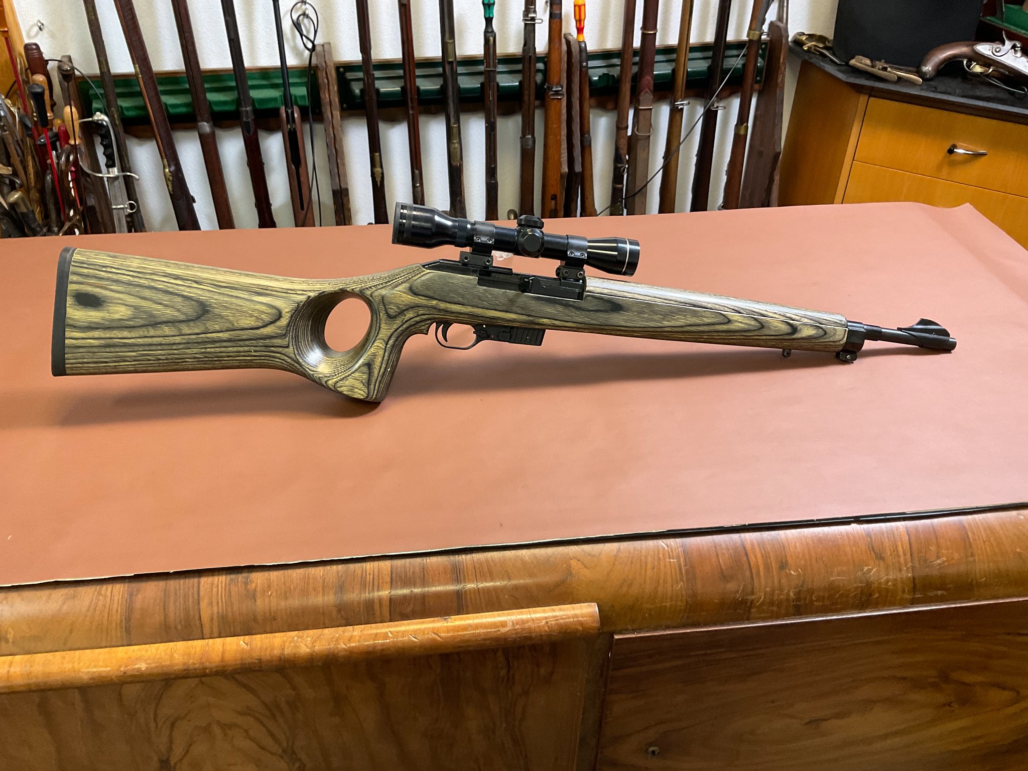 Bei der Waffe handelt es sich um eine relativ seltene Ausführung mit Schichtholz-Lochschaft. Ausgestattet ist sie mit einem 5-Schuss-Wechselmagazin sowie einem Tasco-Zielfernrohr 4×32 mit Duplex-Absehen.