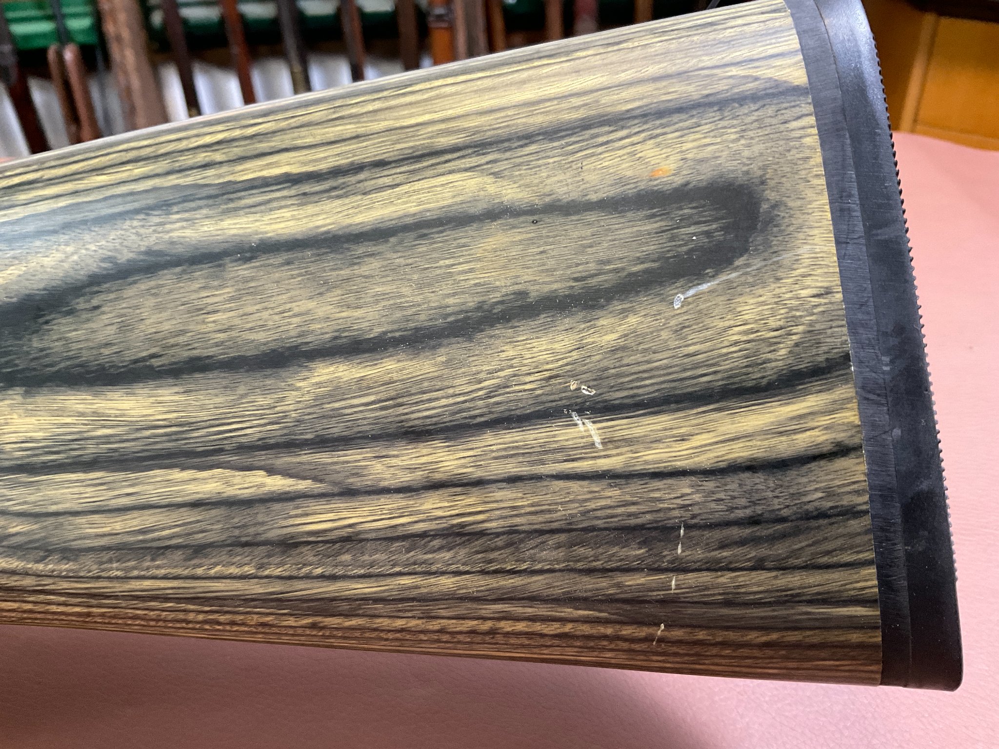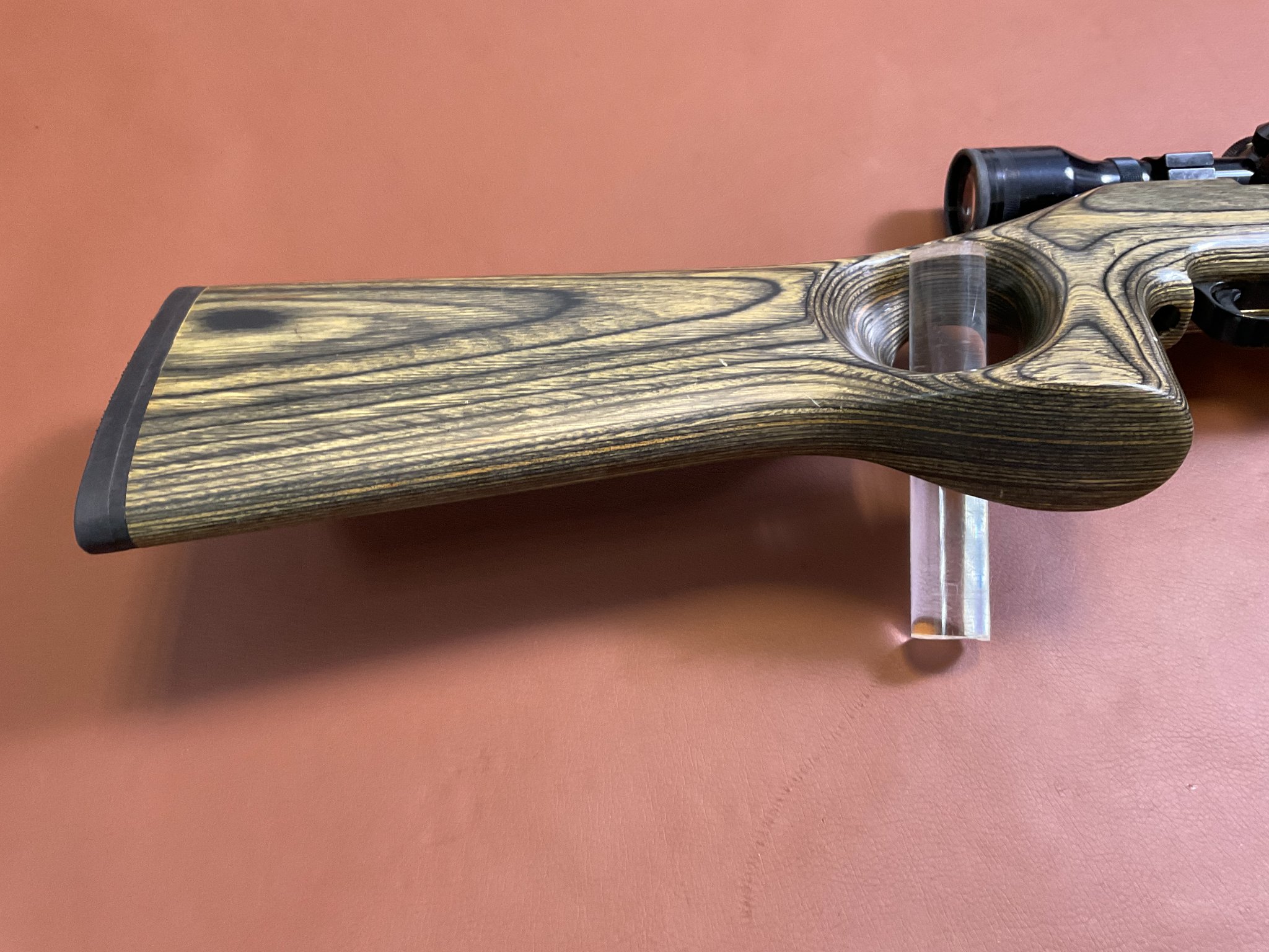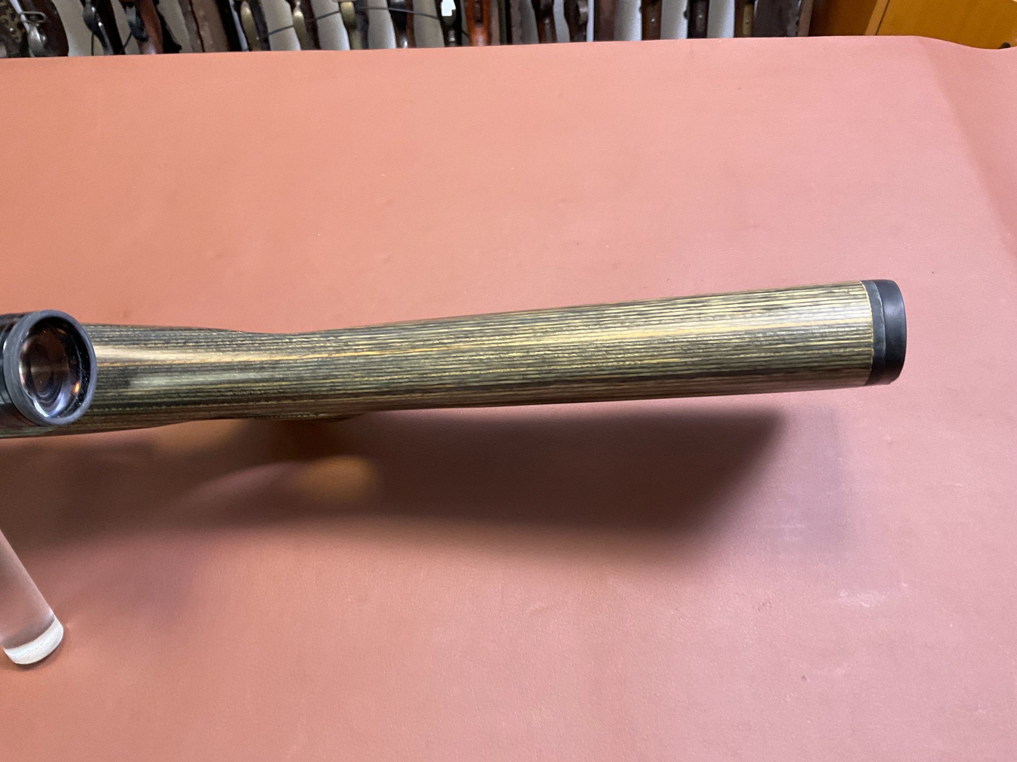 Bei der Waffe handelt es sich um eine relativ seltene Ausführung mit Schichtholz-Lochschaft. Ausgestattet ist sie mit einem 5-Schuss-Wechselmagazin sowie einem Tasco-Zielfernrohr 4×32 mit Duplex-Absehen.
