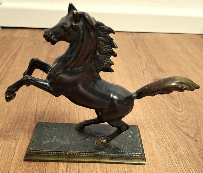 Schöne Deko für Ihr Jagdzimmer oder für den Pferdeinteressenten. Ein springendes Pferd auf Sockel aus Messing oder Bronze. Gewicht ca. 1,2kg. Weitere Details s. Bilder! KEIN VERSAND INS AUSLAND!! Anfragen aus dem Ausland/EU werden nicht mehr beantwortet und Bieter werden umgehend gesperrt! (Aufgrund einiger schlechten Erfahrungen ist dieses leider erforderlich! Lieferung / Rechnungsanschrift NUR innerhalb der BRD!! Der Versand erfolgt nach Zahlungseingang an Sie !! Keine Abholung möglich! Gemäß § 19 UStG erheben und weisen wir keine Umsatzsteuer aus (Kleinunternehmerstatus).ACHTUNG!! VERSENDE NICHT INS AUSLAND AUCH NICHT IN ANDERE EU-LÄNDER!!!!Anfragen zwecklos!! Die angegebene Versandkosten stehen fest und sind NICHT verhandelbar! Wem das nicht passt, bitte hier NICHT bieten!! BITTE BEACHTEN!!! KEIN VERSAND INS EU/AUSLAND!!! Bei dem ersteigern von mehreren Artikeln können sich die Versandkosten aufgrund eines evtl. Höheren Paket Gewicht erhöhen.
