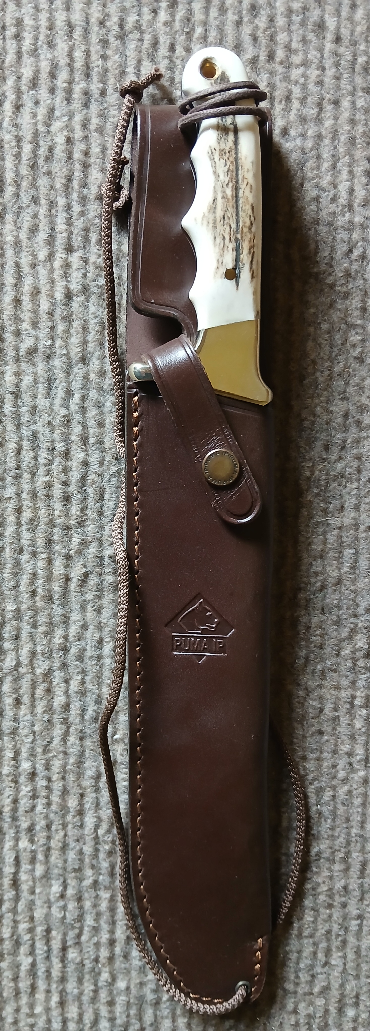 Angeboten wird ein Puma IP Longhorn stag 810676 aus dem Jahre 2022. Das Messer ist neuwertig, nicht gebraucht und auch nicht beschliffen. Das Messer kommt in der braunen Lederscheide.