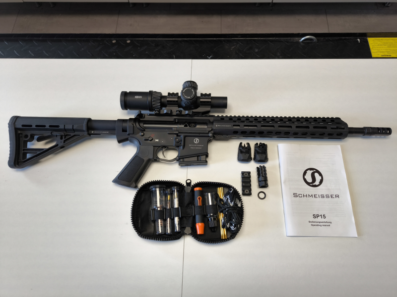Die SP15 M4FL von SCHMEISSER ist eine präzise Repetierbüchse im Look & Feel eines AR15-Gewehrs. Das "SP" steht für "Straight Pull", also ein Geradezugrepetierer. Die SP15 aus dem Hause Schmeisser kommt mit kanneliertem freischwingenden Matchlauf. Der Dynamic-Trigger verspricht eine besonders gleichmäßige Abzugscharakteristika. Wie bei Schmeisser-Waffen gewohnt, erfolgt die Auslieferung mit beidseitig bedienbarem Magzinauslöser und Sicherung. Hier in der 14,5-Zoll Laufvariante, die auch für Sportschützen zugelassen ist.
