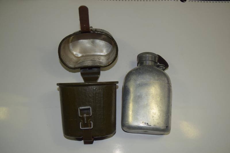 Militärisches Koppelgeschirr aus Alu. Herausnehmbare Alu-Flasche, obere und untere Hälfte der Trageschale können für Nahrungsmittel genutzt werden. Gesamthöhe ca. 20,5cm. Gebraucht. Versand nur als Paket wg. Sendungsverfolgung. Bei Versand ins Ausland berechne ich aktuelle DHL Versandkosten – bitte Höhe für Ihr jeweiliges Land erfragen. Privatauktion, daher keine Gewährleistung und keine Rücknahme.
