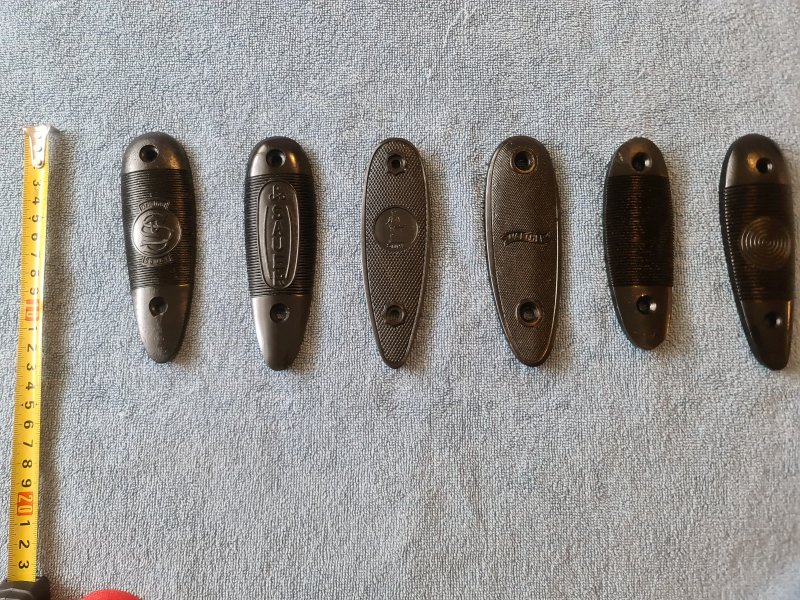 Zum Verkauf stehen 6 Schaftkappen verschiedener bekannter Waffenhersteller aus Kunststoff/ Stahl.