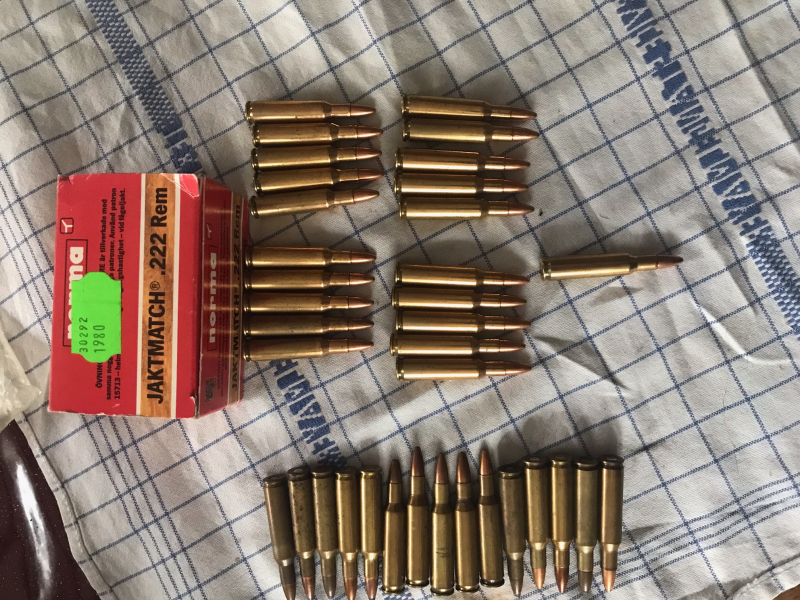 Von Privat aus einem Nachlass an EWB : 21 Schuss im Kaliber .222Rem von Norma Jaktmatch plus als Geschenk 15 Patronen div - siehe Bild - Fabrikpatronen - Von Privat, daher keine Garantie oder Rücknahme - Versandpauschale 6 Euro - Verkauf nach Österreich nach Rücksprache möglich -