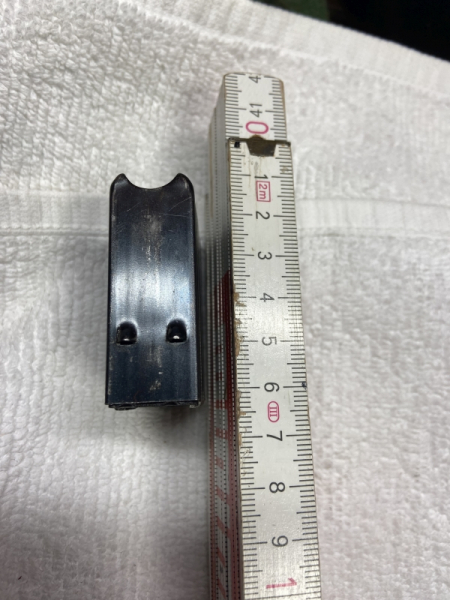 Kleines Magazin, Zustand siehe Bilder. Die Halterung sind deutlich erhaben, so dass der Sitz gut ist. Ich habe auch ein Magazin mit abgenutzter Halterung, das behalte ich.