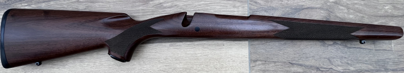 Schönes dunkles Holz mit ein paar wenigen Druckstellen. Schlanker und leichter Rechtsschaft für Rechtssystem Kal.270 WSM.
