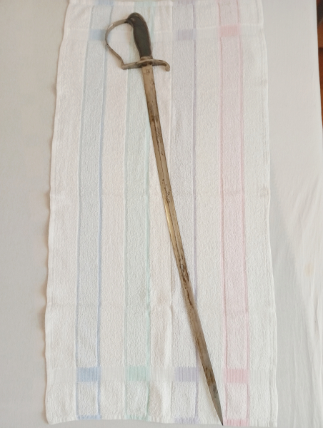 Biete einen deutschen Säbel der Firma Weyersberg und Kirschbaum Co. ca. 1885 an. die Firma ist als Marke auf der Klinge gestempelt. Keine Scheide vorhanden. Griff nicht original, bestehend aus Kunststoff mit Trockenriss (siehe Bild).Kein Rost, einige Abriebspuren der Vernickelung, keine Narben, Klinge nicht verbogen.