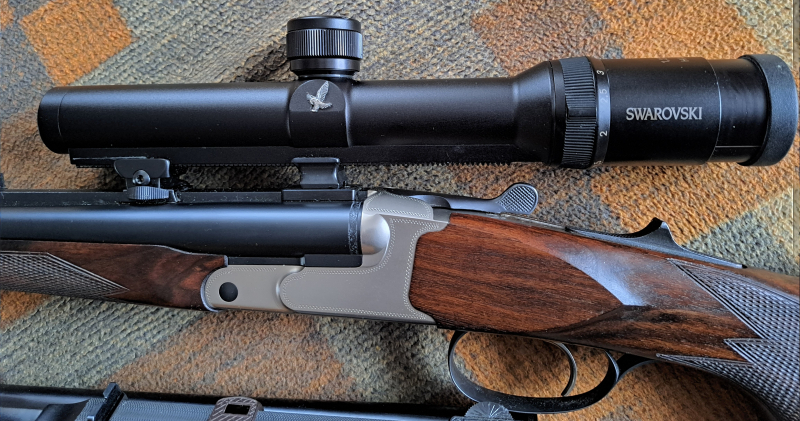 Verkaufe aus Nachlass Krieghoff Classic Doppelbüchse mit 2-Schloß Handspanner, Einabzug und Rückstecher im Kaliber 8X57 IRS. Mittels Kontraeinhakmontage ist ein Swarovski Zielfernrohr 1,25 bis 4 X24 mit Leuchtabsehen montiert. Aus der Waffe wurden weniger als 20 Schuss abgegeben. Die Schussleistung ist sehr gut. Lauflänge 60 cm, Schaftlänge 34 cm.
