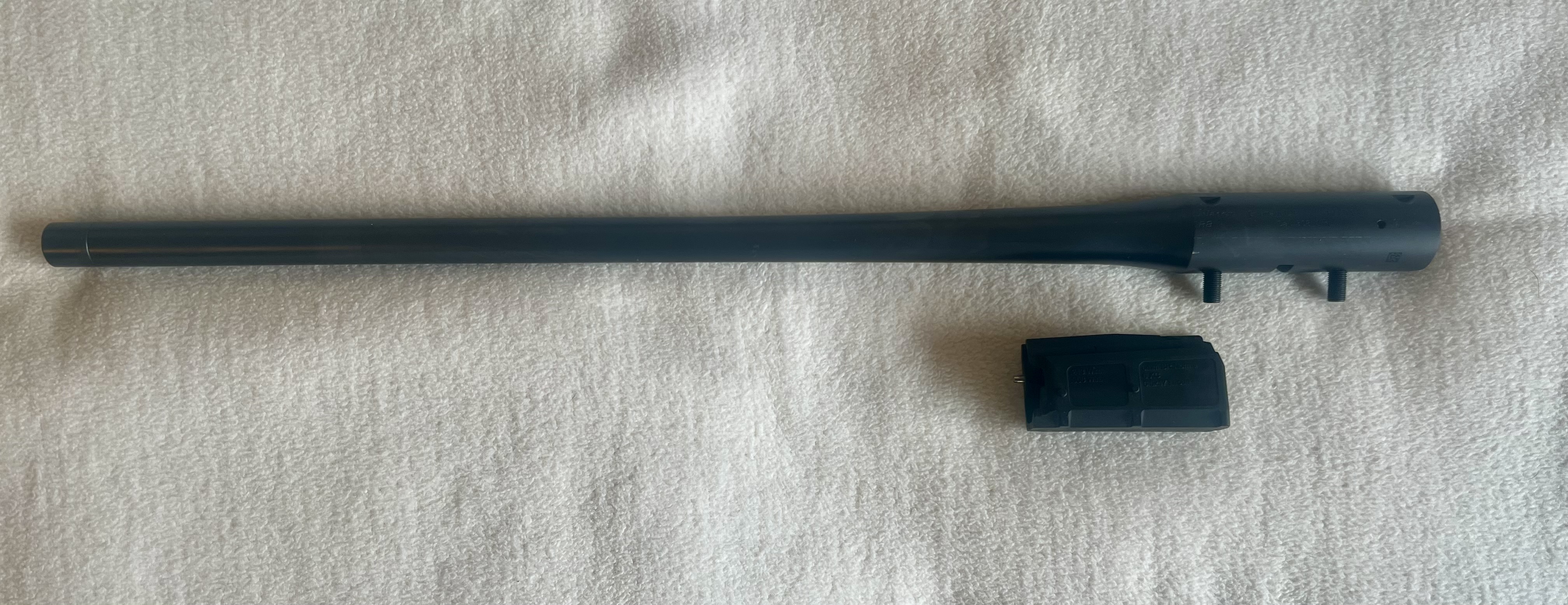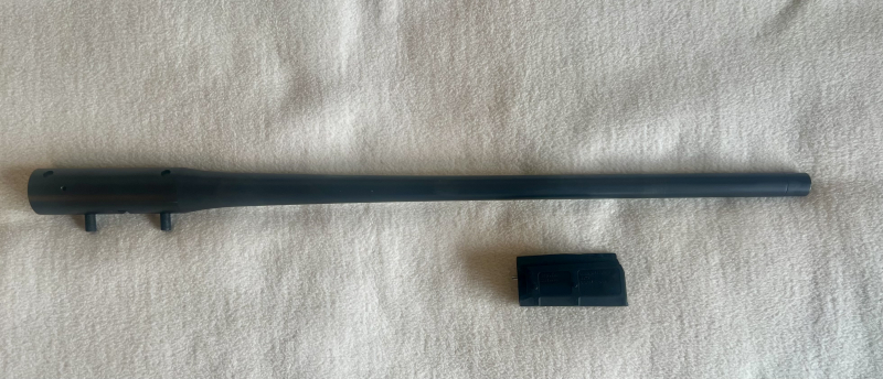 Zur Auktion angeboten wird ein Wechsellauf für eine Blaser R8 im Kaliber .308Win mit Magazineinsatz, aber ohne offene Visierung und mit M15x1 Gewinde. Die Lauflänge beträgt 52cm.