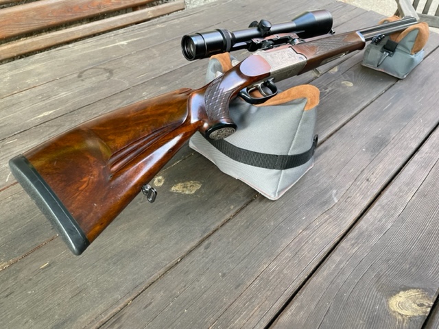 Verkaufe Blaser Bergstutzen 750/88. Kaliber 6,5x57R/.22 Hornet. War ein "haben wollen Teil". War nie zur Jagd draußen. Die Läufe sind blank. Sie ist in einem sehr guten Zustand. Ein paar winzige Macken am Schaft. Die Brünierung ist top. Glas Swarovski Habicht 3-12x50. Abstand Schaft zum Abzug 36 cm. Die Waffe ist links geschäftet. Verkaufe Waffe von einem guten Kumpel. Nun das Übliche: Keine Garantie, keine Nachverhandlungen, keine Rücknahme.