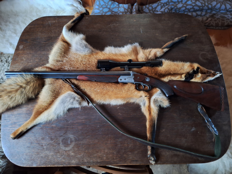 Der Drilling verfügt über einen Büchsenlauf (6,5x57R) und zwei Schrotläufe (16/70).