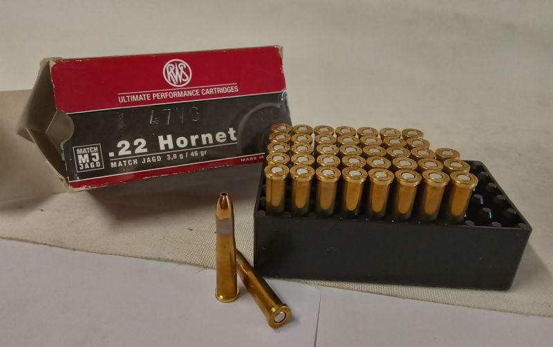40 Patronen RWS .22 Hornet,3g MatchJagd. Privatverkauf, daher keine Garantie oder Gewährleistung, what You see is what You get...