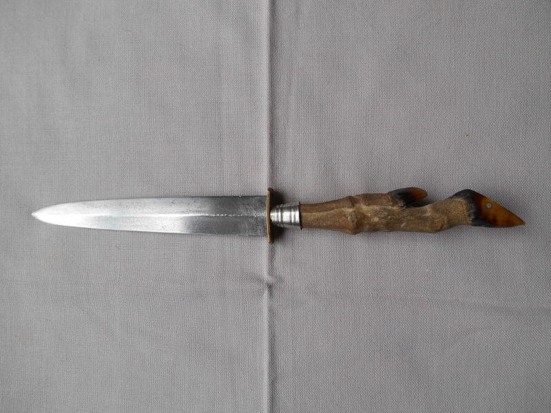 antikes Jagd Messer / Grabendolch 1. Weltkrieg, Rehfuß - Griff !!, Klinge ca. 14,2 cm, ohne Scheide, Parierstange minimal locker !