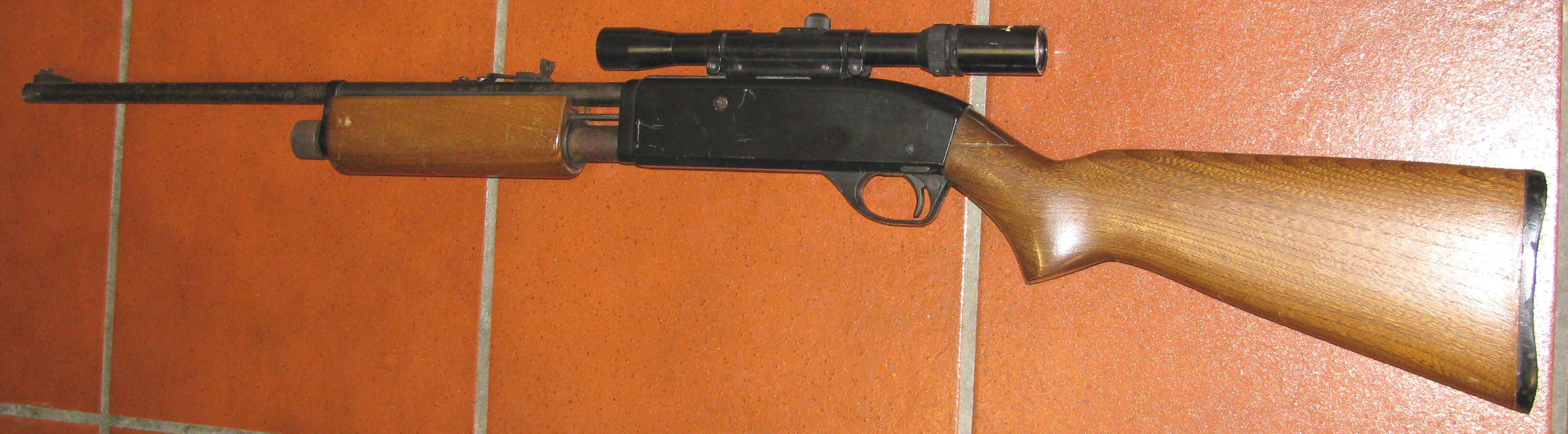 Zum Verkauf kommt ein seltenes CROSMAN CO2 Luftgewehr, ein 622 PELL CLIP REPEATER mit Zielfernrohr und F - Zeichen