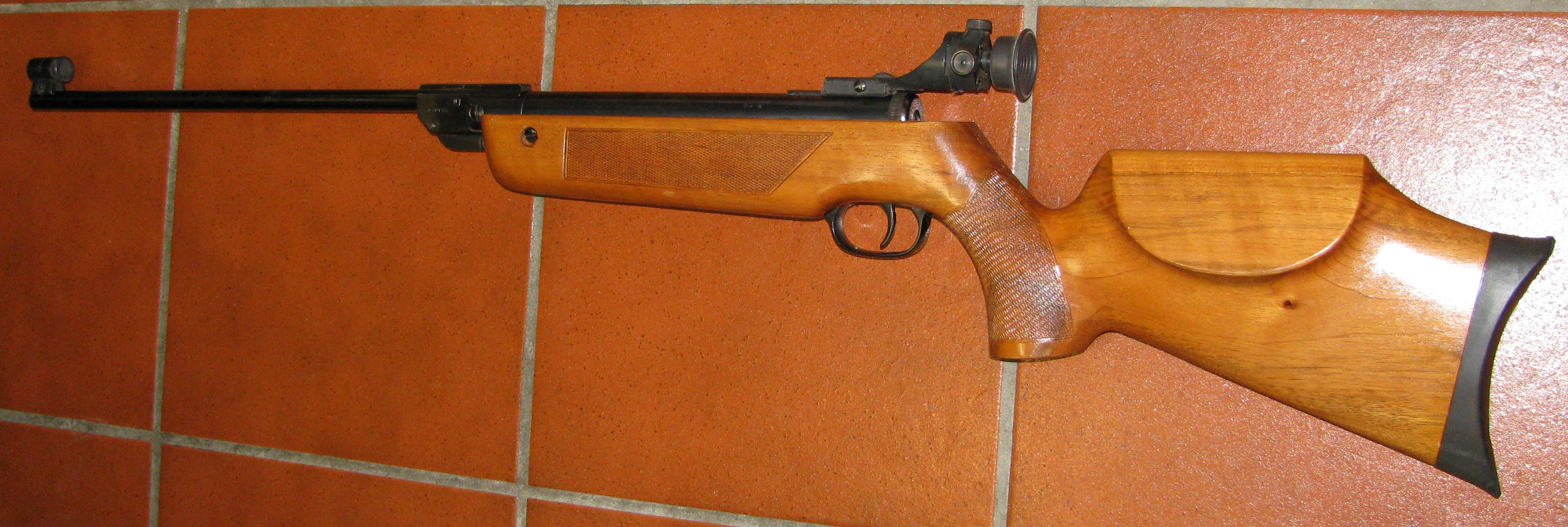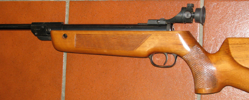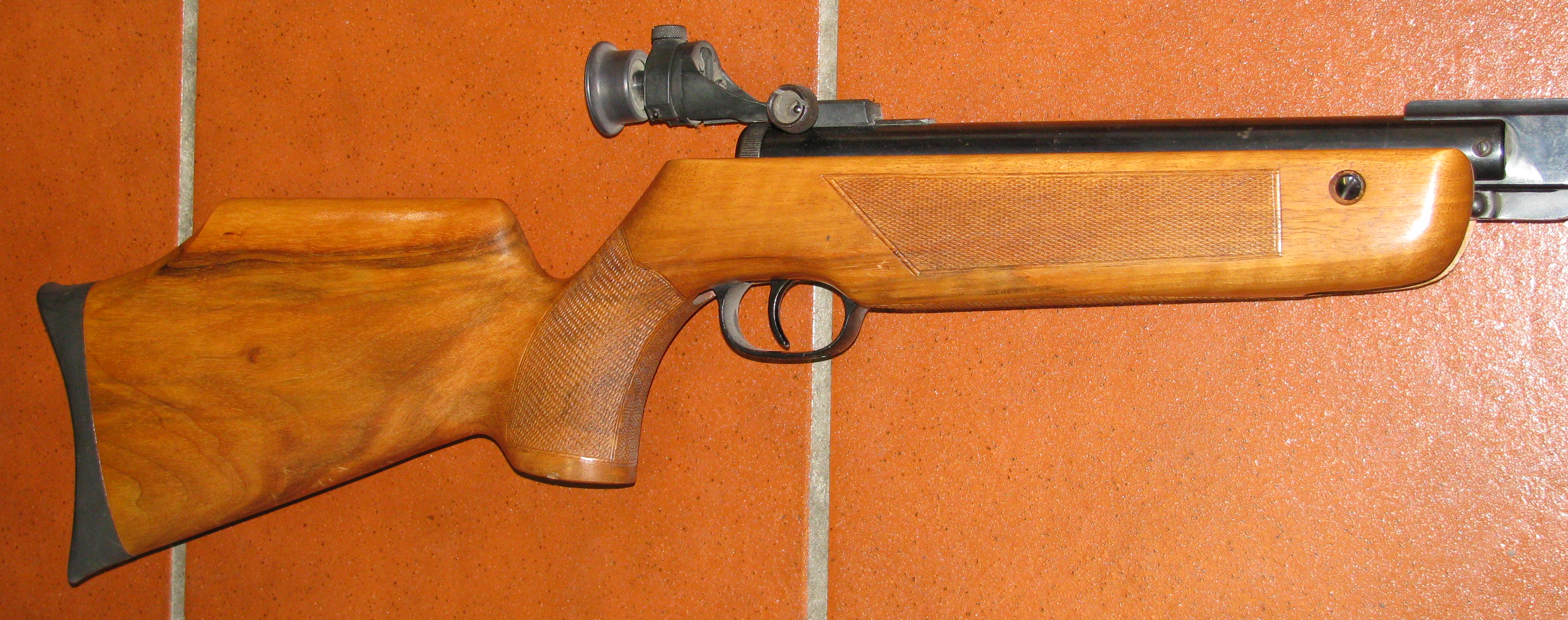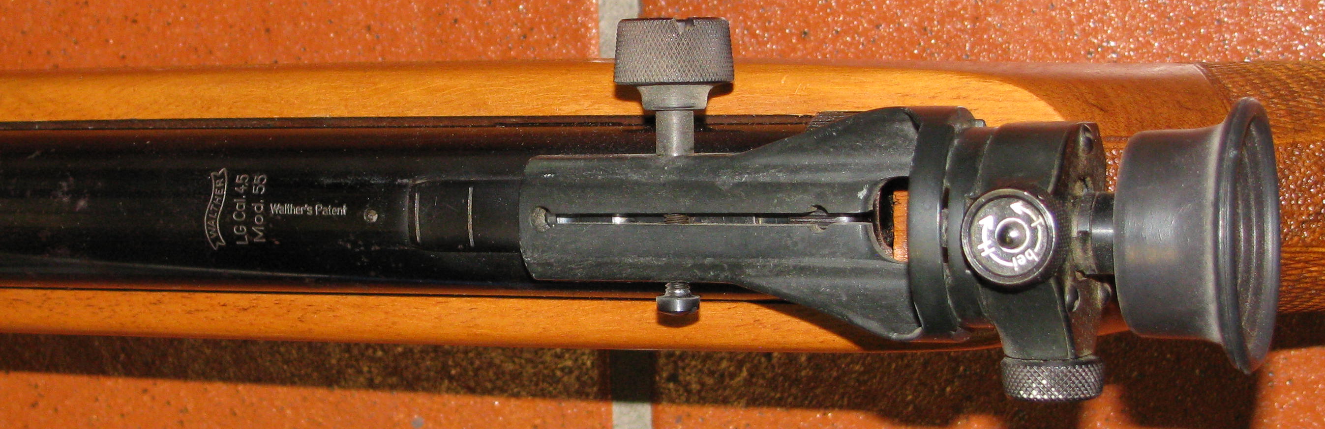 Zum Verkauf kommt ein WALTHER Luftgewehr, ein WALTHER Mod. 55 mit schönen Schaft in Cal. 4,5 mit dem originalen Diopter