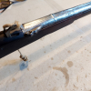 antikes Luntenschloß-Gewehr aus Verlassenschaft, Zustand dem Alter entsprechend siehe Fotos, Schaft überarbeitet (ebonisiert), sonst unverbastelt, Abzugsmechanik funktioniert, langer schwerer dickwandiger Lauf vorne trichterförmig geweitet, gemarkt siehe Fotos, Länge 150cm, cal. ca. 16mm,