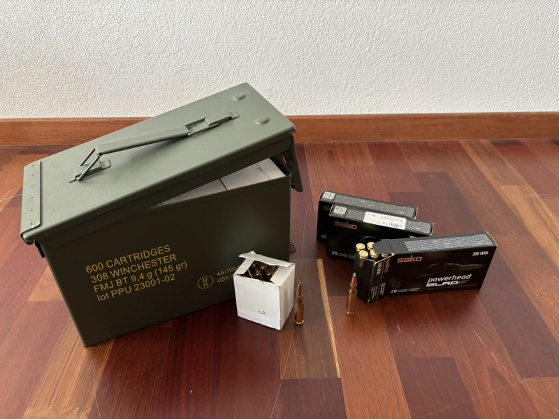 Zum Verkauf stehen etwas mehr wie 550 Schuss Vollmantel im Kaliber .308Win und 50Schuss jagdliche Munition SAKO Powerhead Blade (Deformator)