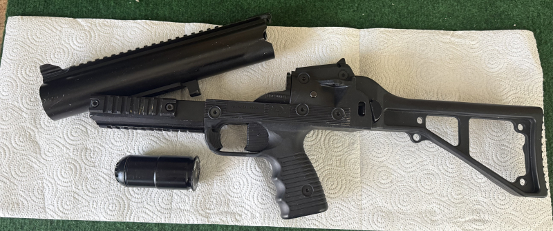 Hallo Leute, ich biete hier im Auftrag meines Kollegen einen Granatwerfer an. Dieser wird mit 6mm BB bestückt und als Antrieb wird normal Druckluft verwendet. Zur Auktion gehört der Werfer und eine Granate, wie auf den Bildern zu sehen ist. Bei Fragen einfach eine Mail schreiben und ich versuche diese Zeitnah zu beantworten.