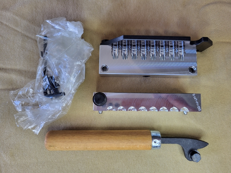 Mit dieser Kokille können gleichzeitig 8 Geschosse mit 147 grain für 9mm gegossen werden.