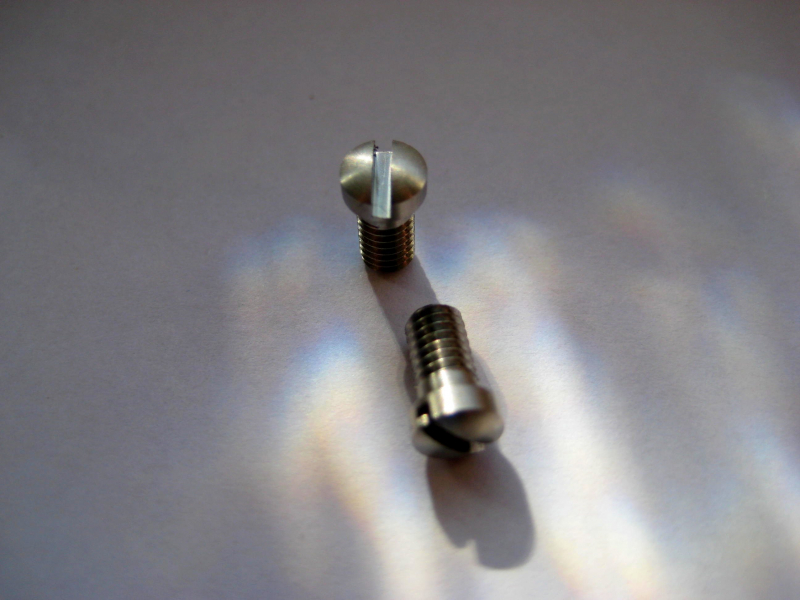 Meist leiden die beiden Schrauben unansehlich am Schraubenkopf beim Aus- und Einbau bzw. Nachspannen der Federkraft auf den Unterhebel. Grund dafür ist, die Schrauben müssen kräftig angezogen werden, um entsprechende Spannkraft über die Federn auf den Unterhebel herzustellen. Dadurch sind oft die Schraubenköpfe vermackt/verbogen oder im schlimmsten Fall an einer Schraubenkopfhälfte abgebrochen. Im original sind in der Regel Schrauben in brünierter Version verbaut. Hier biete ich silberne in Edelstahl zum Kauf an, da diese wesentlich länger Farbe und Finish nach häufigerem Gebrauch an den Schraubenkanten behalten als brünierte.