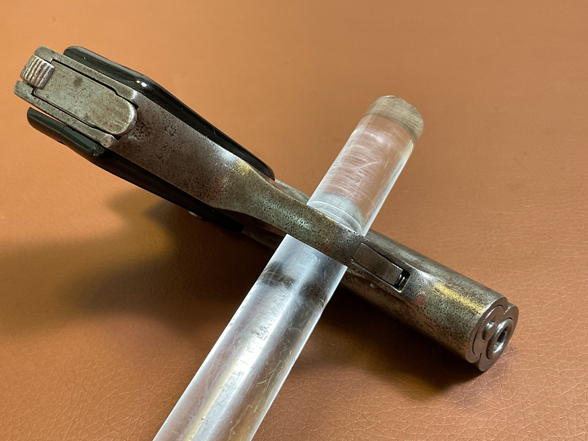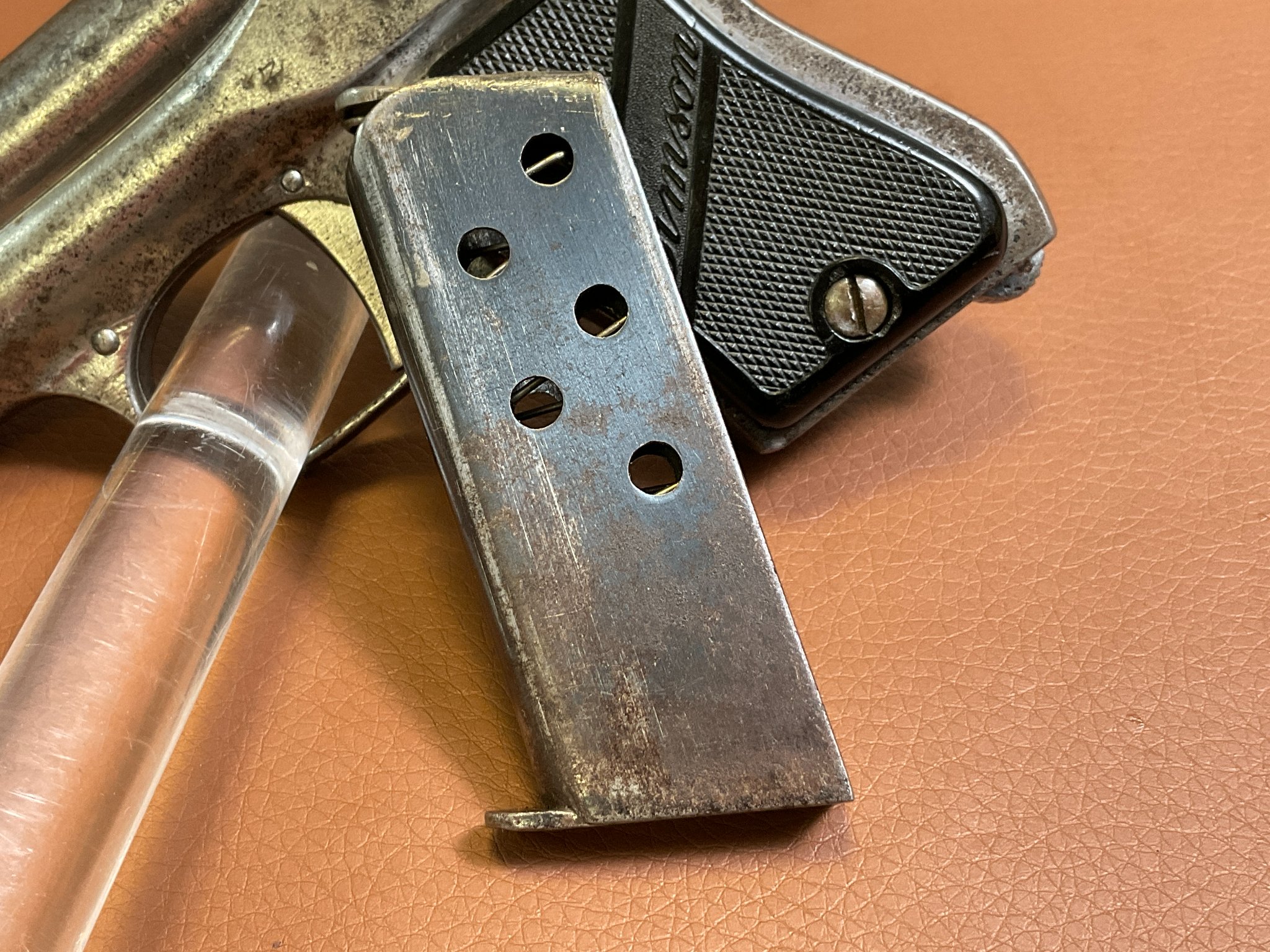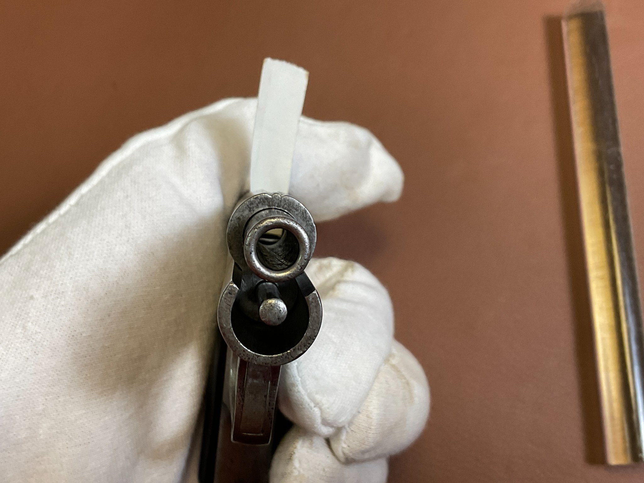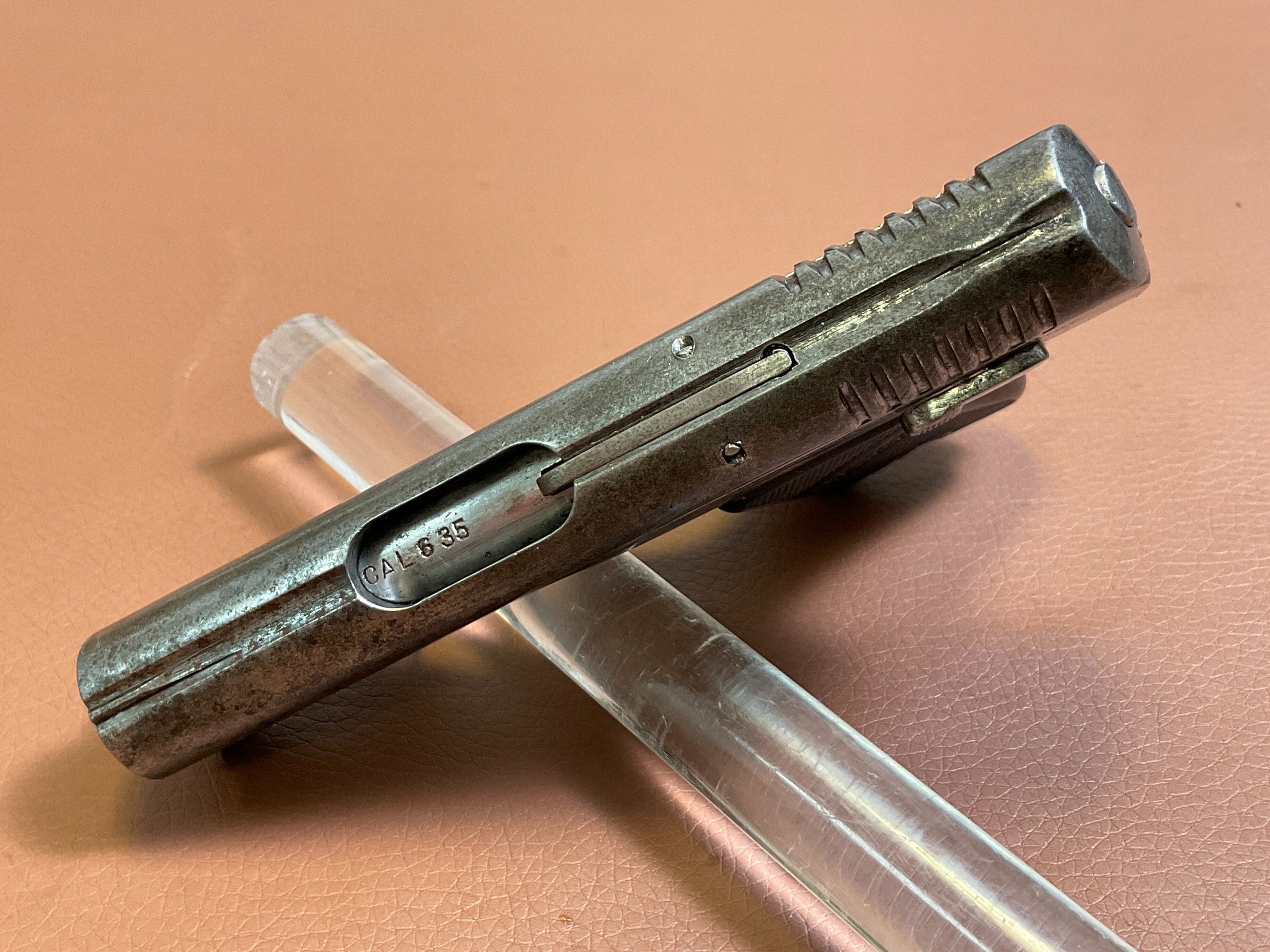 Die Waffe weist deutliche Abnutzungen an der originalen Brünierung auf.