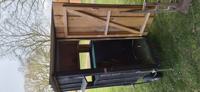 Verkaufe meinen Ansitzwagen, der Ansitzwagen wurde von einem Zimmermann und Jäger gebaut, stabile Aussteifung mit Dachlatten, verkleidet mit Schwartenbretter, Blechdach, Tischhöhe 105 cm, seitliche Stützen, innen mit Teppich verkleidet