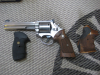Der Revolver wurde durch den Revolverspezialist Herr Merkle, Backnang überarbeitet. Innere Abzugsteile poliert, Abug auf 1000 Gramm Abzugsgewicht getunt, Triggerstopp eingebaut, Sonnenschliff auf Hammer, TRT Visier, 2-stufig verstellbares Korn (kostet alleine fast 100 Euro), 3 verschiedene Griffe einer davon von Nill + original Karton von S&W.