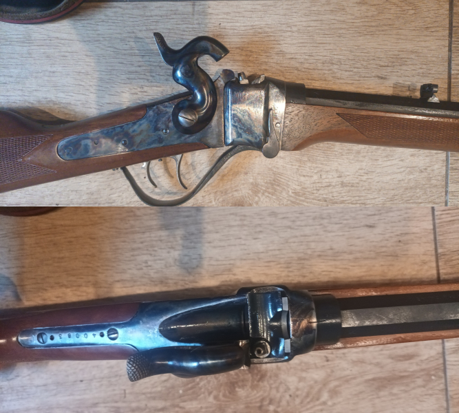 Zum Verkauf kommt eine fast neuwertige, sehr gut gepflegte und wenig geschossene Sharps Rifle I.A.B. Gardone VT im Kaliber .45 und einem schweren Achtkantlauf.