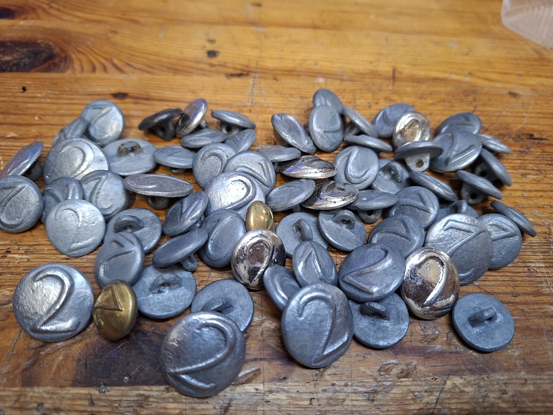 Knopfsortiment mit Nr 2 für das Reenactment - 46 x Zinn 1,5 cm - 10 x Zinn 2 cm - 7 x versilbert - 2 x Messing -