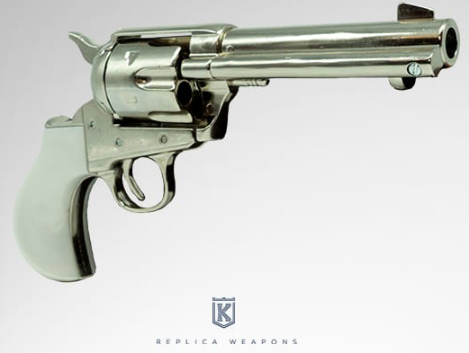 KOLSER DEKO / MODELL WAFFE COLT THUNDERER USA 1877 - NICHT SCHUSSFÄHIG - Metall Nickel Poliert - Perlmuttoptikgriff - Vogelgriff - Alle Metallteilen beweglich - Länge 25,5cm Gewicht ca. 910gr - Geliefert im Geschenkkarton mit 6 Dekopatronen - Zündkapseln möglich -
