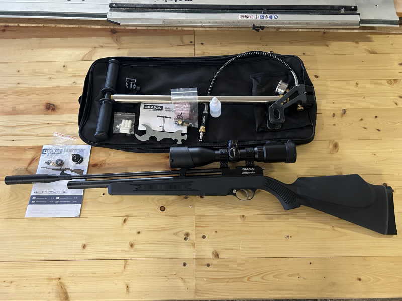 Zum Verkauf steht unsere Diana Stormrider mit UTG Zielfernrohr 2-7x44 Mill dot und Diana Handpumpe.