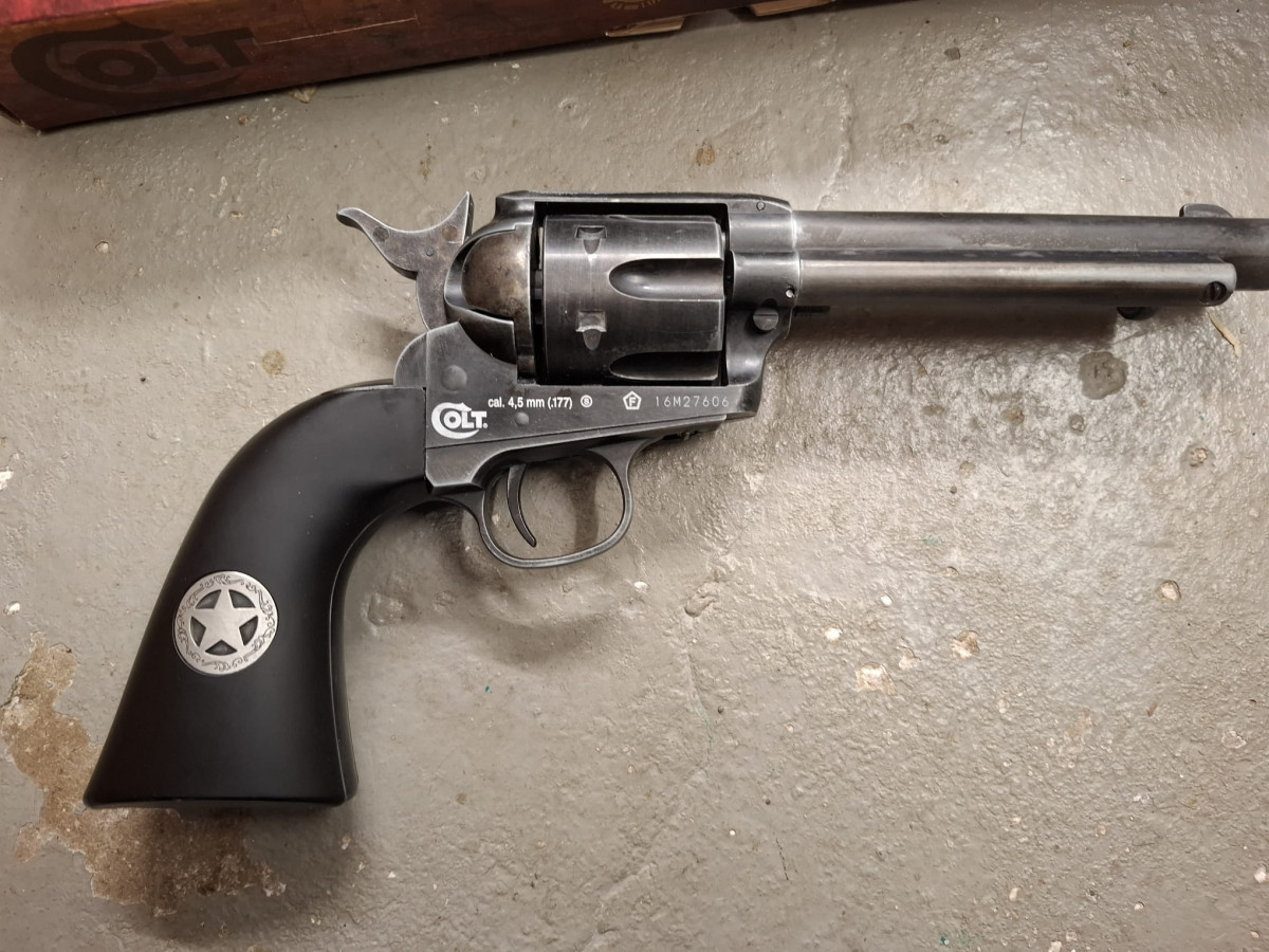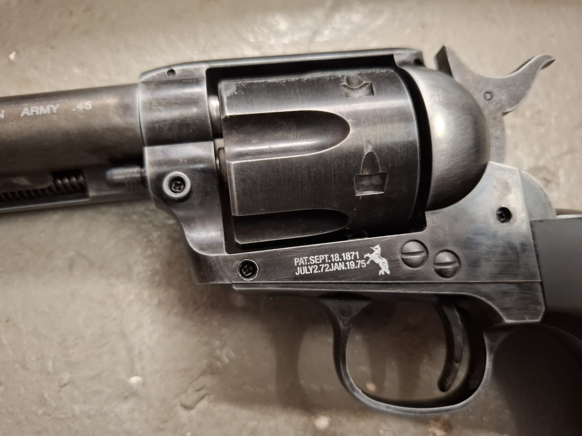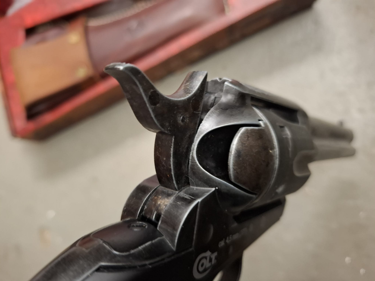 Umarex Colt CO2 Revolver mit 6 Ladapatronen Vollmetall Version, sehr realistisch, bisher vermutlich noch ungeschossen, stammt aus Sammlernachlass Antik-Finish used look