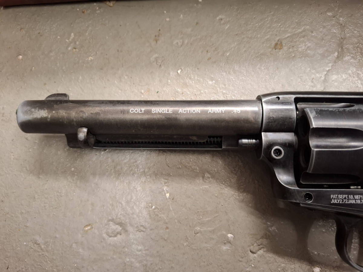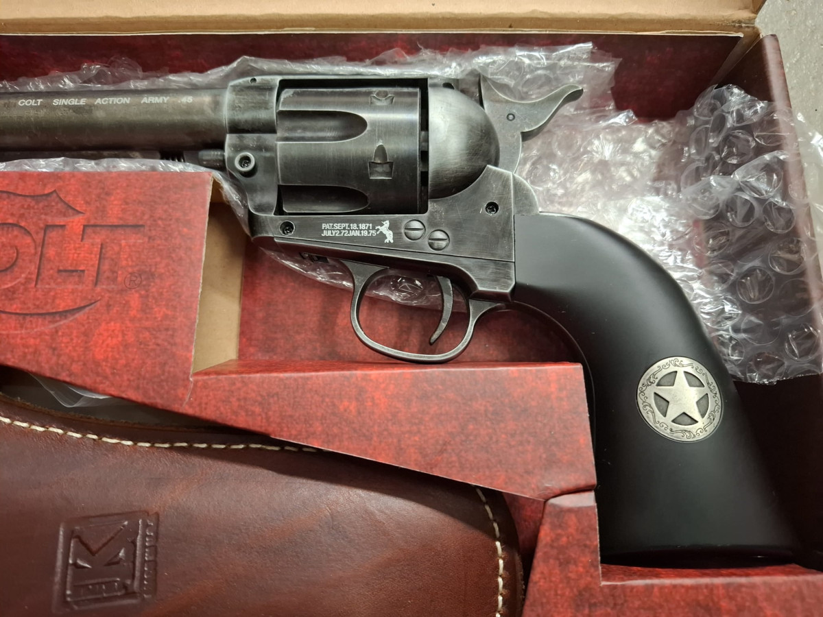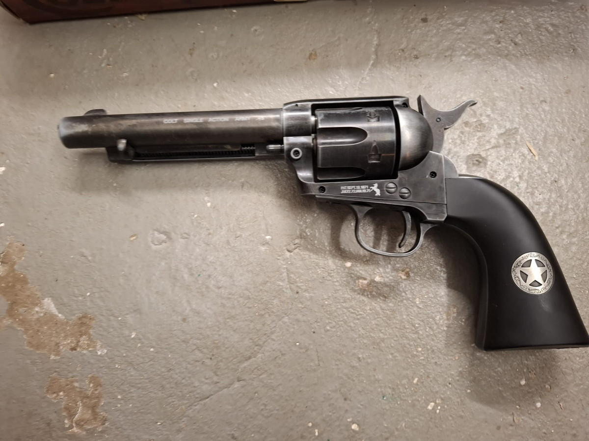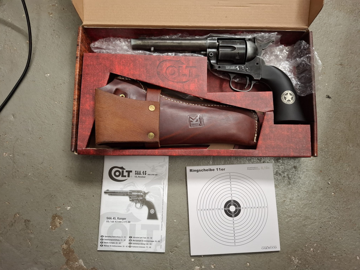 Umarex Colt CO2 Revolver mit 6 Ladapatronen Vollmetall Version, sehr realistisch, bisher vermutlich noch ungeschossen, stammt aus Sammlernachlass Antik-Finish used look