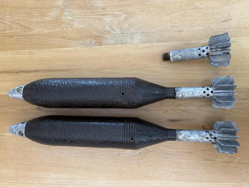 For sale nice two 81mm M56 WW2 mortar rounds.
